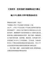 汇报发言:坚持党建引领凝聚奋进力量在融入中心服务大局中彰显使命担当