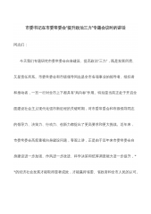 市委书记在市委常委会“提升政治三力”专题会议时的讲话同志们:今天我们专题研究市委常委会自身建设、提高政治“三力”,既是发展所需、又是责任所系。市委常委会和市级领导同志是全市各项事业的领导者、组织者和推动者,一言一行对全市上下都具有“风向标”作用。特别是当前正处于开启全面建设社会主义现代化强市新征程的关键时期,对市委常委会和市级领导同志的领导力、决策力、行动力、创新力都提出了更高要求和更大挑战。近年来,市委常委会高度重视自身建设问题,客观上讲,正是由于近年来市委常委会自身建设进一步加强、作风进一步改进、科学决策和统筹调度能力进一步提升,**的经济社会发展才能取得显著成效,才能赢得省委、省政府和全...