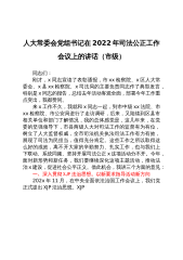 人大常委会党组书记在2022年司法公正工作会议上的讲话(市级)