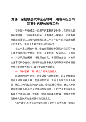 党课:深刻领会六中全会精神,用奋斗担当书写新时代纪检监察工作