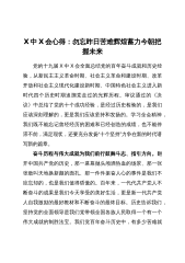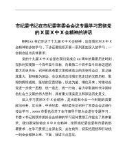 市纪委书记在市纪委常委会会议专题学习贯彻党的X届X中X会精神的讲话刚刚xx书记传达了十九届X中X会精神,这是我们对X中X会精神初步的学习,下步还要组织开展一系列更加深入的学习,一会我会提出具体要求。党的十九届X中X会是在我们党成立xx周年的重要历史时刻,在胜利实现第一个百年奋斗目标、向着第二个百年奋斗目标迈进的重大历史关头,召开的具有重大里程碑意义的历史性会议,意义极其重大、影响极为深远。会议系统总结我们党走过的光辉历程、取得的辉煌成就、凝结的宝贵经验,以史为鉴、继往开来,对推动全党进一步统一思想、统一意志、统一行动,奋力夺取新时代中国特色社会主义新的伟大胜利,具有重大现实意义和深远历史意义。...