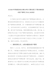 在2024年贯彻落实机关事业单位习惯过紧日子要求推进国有资产管理工作会上的讲话