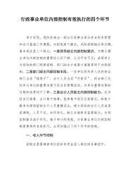 行政事业单位内部控制有效执行的四个环节审计发现,现阶段相当一部分行政事业单位存在财务管理和会计基础工作薄弱,内控制度不健全,风险控制缺位等问题。基本现状是三个缺乏:一是领导缺乏内部控制意识。对建立健全单位内部控制的重要性认识不够,认为可有可无;或简单认为财政的部门预算控制、部门的会计核算片面就等同于内部控制。二是部门缺乏内部控制手段。一些单位的负责人仅把财会部门当成“钱袋子”,会计人员当成“付款员”,财会部门无权参与单位的重要决策乃至业务管理活动,对单位重要决策的过程和结果均不了解。三是会计人员缺乏内部控制能力。在历经自行核算、会计集中核算,国库集中收付及核算后,除极少数单位原保留的会计人员重...