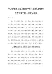 领导在2025年国家统计局地方调查总队党建工作领导小组会议上讲话稿与在单位深入贯彻八项规定精神学习教育部署会议上的讲话稿【2篇文】领导在2025年国家统计局地方调查总队党建工作领导小组会议上讲话稿(部署深入贯彻中央八项规定精神学习教育)同志们:今天,我们召开本次党建工作领导小组会议,专题研究部署深入贯彻中央八项规定精神学习教育工作,意义重大且深远。这不仅是对主题教育成果的巩固深化,更是我们推进全面从严治党、提升党的建设质量的关键举措,与我们XX统计调查事业高质量发展息息相关。下面,我谈几点意见。一、提高政治站位,深刻认识学习教育重要意义(一)强化思想引领,筑牢信仰根基深入贯彻中央八项规定精神学...