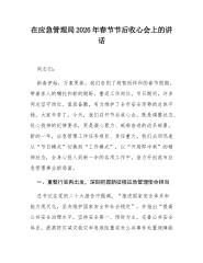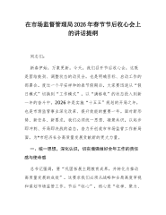 节后收心会上的讲话提纲:凝心聚力再出发砥砺奋进开新局,奋力开创全市医保事业高质量发展新局面同志们:春节假期已过,新程已然开启。此次会议既是团结鼓劲、调整状态的收心会,亦是明确目标、部署工作的动员会。全体干部职工需即刻从“假日模式”切换至“工作模式”以“满格电”的精神状态投入新年度战斗。过去一年,全市医保系统攻坚克难,各项工作稳中有进,参保率稳定在95%以上,基金运行总体平稳,重点改革持续深化。成绩属于过去,奋斗成就未来。我们必须清醒认识到,医保改革发展任务依然艰巨繁重,群众对更高水平保障的期待日益增长。下面,我讲三点意见。一、迅速收心归位,凝聚砥砺前行思想共识习近平总书记深刻指出,“良好的精神...