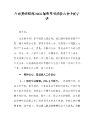 在市城市管理和综合执法局2025年春节节后收心会上的讲话