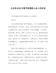 在市城市管理和综合执法局2025年春节节后收心会上的讲话同志们:大家新年好!春节假期已经结束,我们齐聚在此召开节后收心会。过去的春节期间,全市城管部门坚守岗位,严格落实市委市政府部署,对重点行业领域开展督查检查,确保了城市管理领域工作的平稳有序,展现出了高度的责任感和敬业精神。在此,我代表局党组,向节日期间坚守岗位的同志们表示衷心的感谢和崇高的敬意!2025年是“十四五”规划实施的收官之年,也是“十五五”规划编制之年,做好城市管理工作意义重大。新的一年,我们要以新时代中国特色社会主义思想为指导,全面贯彻党的二十大和二十届二中、三中全会精神,深入落实总书记对城市管理工作的系列重要论述和在湖南调研...