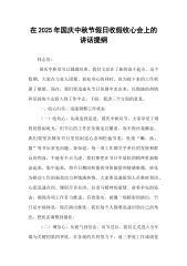 在2025年国庆中秋节假日收假收心会上的讲话提纲