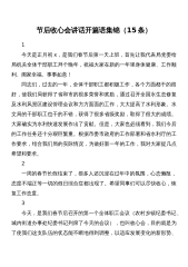 2021年在全局节后收心会上讲话稿和在共青团市委春节后收心会讲话稿2021-03-01东风浩荡、大地回春;新春伊始,万象更新。节后第一天,我们召开会议,首先我代表局党委班子给大家拜个晚年,同时祝大家在新的一年里,阖家欢乐、工作顺利。凡是过往,皆为序章。今天,我们召开会议,既是回首过去,向昨天挥手作别;更是展望新年,向梦想追赶前行。在这里,我主要讲三点意见:一要回归初心、找寻本色。一个人也好,一个政党也好,最难得的就是历经沧桑而初心不改、饱经风霜而本色依旧。初心易得,始终难守各部门各科室要重温誓词不忘本心。大家知道,房间要经常打扫,镜子也要经常擦拭。组织大家重温党章,重温自己的入党誓言,目的就是...