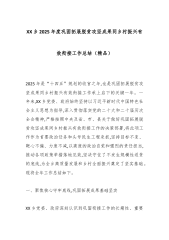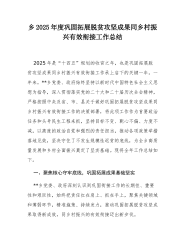X乡2025年巩固拓展脱贫攻坚成果同乡村振兴有效衔接工作总结(精品)2025年是“十四五”规划的收官之年,也是衔接“十五五”发展的关键之年。一年来,XX乡党委、政府深入贯彻落实中央、省、市、县关于巩固拓展脱贫攻坚成果同乡村振兴有效衔接的决策部署,立足乡情实际,聚焦守底线、抓发展、促振兴,统筹推进各项重点工作,全乡经济社会发展呈现稳中有进、持续向好的良好态势。现将全年工作总结如下。一、基本情况(一)聚焦产业发展,夯实乡村振兴根基坚持把产业发展作为巩固拓展脱贫攻坚成果的根本之策和乡村振兴的核心抓手,因地制宜,精准施策,推动特色产业提质增效,拓宽群众增收渠道。一是传统优势产业稳固提升。立足资源禀赋,...