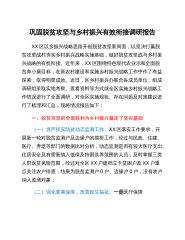 根据会议安排,现将巩固拓展脱贫攻坚成果与乡村振兴有效衔接工作情况汇报如下:一、主要做法及成效2021年以来,县乡村振兴局认真贯彻落实县委、县政府部署要求,坚持把防止规模性返贫作为头等大事,把做好巩固拓展脱贫攻坚成果同乡村振兴有效衔接作为最紧迫的任务,着力在巩固、拓展、衔接上下功夫、见实效,接续推进乡村全面振兴。一是守住底线,防返贫致贫机制有效健全。坚持科学谋划、统筹安排、靶向施策。抓好预警监测,建立农村低收入人群信息比对工作联动机制,分类设定“红黄”监测标准,强化数据采集和分析应用,每月常态化开展动态监测排查和低收入人口帮扶。截至目前,全县共发现XX户XX人符合监测标准的突发严重困难户。同时,...