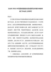在全县巩固拓展脱贫攻坚成果同乡村振兴有效衔接考核评估反馈问题整改工作推进会上的讲话同志们:刚才,我们传达学习了省委XXXX在全省基层XX工作会议上的讲话精神以及全省、全州巩固拓展脱贫攻坚成果同乡村振兴有效衔接考核评估反馈问题整改工作推进会议精神,通报了国家对省考核有关情况,XX同志也对相关工作进行了全面的安排部署,讲得非常具体、有操作性,我完全赞成,请大家会后认真抓好落实。打赢脱贫攻坚战以来,习近平总书记多次发表重要讲话,强调巩固拓展脱贫攻坚成果、不发生规模性返贫,是党中央最关心的一件大事,明确指出乡村振兴是"国之大者",要求我们“在乡村振兴上开新局”“做好乡村振兴这篇大文章”,习近平总书记的...