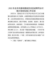 县乡村振兴局2022年上半年巩固拓展脱贫攻坚成果同乡村振兴有效衔接工作总结今年以来,在县委、县政府的坚强领导下,全县上下坚持“守底线、抓发展、促振兴”主基调,聚焦防止规模性返贫目标任务,以“六大巩固提升行动”为抓手,扎实开展巩固拓展脱贫攻坚成果同乡村振兴有效衔接各项工作,取得明显成效。一、工作开展情况1.聚焦“防返贫”,强化动态监测。一是做好动态监测。深化落实“网格化五步工作法”,依托全县xx个乡镇xxx个行政村的防返贫监测网格化管理队伍,通过一户一表、一月一摸排、“三线”预警等工作机制,常态化开展防返贫监测动态。截至目前,全县共识别纳入“三类人群”xxx户xxx人。二是开展集中排查。组织镇村...