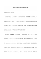 在五四青年座谈会上的交流发言:青年干部要心怀“国之大者”各位领导、各位同事:很高兴在“五四”青年节来临之际,作为青年代表与大家交流工作和生活体会,现在,我就青年干部要心怀“国之大者”这一主题作交流发言,不当之处请批评指正。习近平总书记反复要求广大党员干部要心怀国之大者,就是要站在全局和战略的高度想问题、办事情,一切工作都要以贯彻落实党中央的决策部署为前提,不能为了局部利益牺牲全局利益,为了眼前利益牺牲长远利益、根本利益。青年是祖国的希望、民族的未来,青年强,则国家强心怀“国之大者”,是对青年干部职责的深刻诠释,也是对其精神境界的高度要求。我认为,胸怀“国之大者”就是要在“大”字上下功夫,就是要...