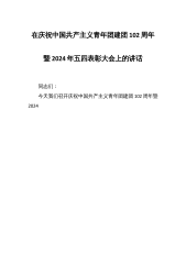 在庆祝中国共产主义青年团建团102周年暨2024年五四表彰大会上的讲话