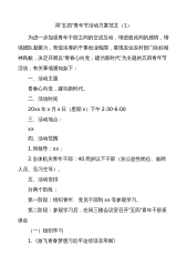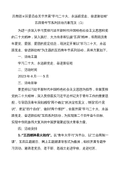 共青团x区委员会关于开展“学习二十大、永远跟党走、奋进新征程”五四青年节系列活动方案范文(1)为进一步深入学习贯彻习近平新时代中国特色社会主义思想和党的二十大精神,深入践行、大力传承和弘扬“五四”精神,培育团员青年爱党、爱国、爱团的坚定信念,现决定开展以“学习二十大、永远跟党走、奋进新征程”为主题的五四青年节系列活动,具体方案如下。一、活动主题学习二十大、永远跟党走、奋进新征程二、活动时间2023年4月——5月三、活动目标要坚持以习近平新时代中国特色社会主义思想为指导,全面贯彻党的二十大精神,深入贯彻落实习近平总书记关于青年工作的重要思想,引导团员青年深刻感悟“两个确立”的决定性意义,增强“四...