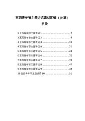 五四青年节主题讲话素材集锦(10组)..................41.......................................................................42.......................................................................63.......................................................................84..............................................