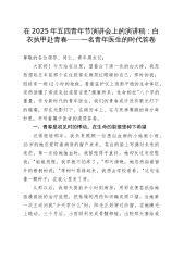 在2025年五四青年节演讲会上的演讲稿:白衣执甲赴青春——一名青年医生的时代答卷