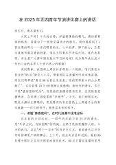 在2025年五四青年节演讲会上的演讲稿:白衣执甲赴青春——一名青年医生的时代答卷尊敬的各位领导、同仁、青年朋友们:大家好!今天站在这里,望着台下清一色的白大褂,我忽然想起五年前那个在住院部走廊哭红眼睛的自己。那时的我,刚结束一场12小时的抢救,看着监护仪上逐渐平稳的生命体征,突然读懂了希波克拉底誓言里"健康所系,性命相托"八个字的重量。作为新时代的青年医生,我们的青春或许没有聚光灯下的璀璨,却在无影灯下、在病历本上、在与死神赛跑的每分每秒里,书写着属于医者的滚烫答卷。一、青春是初见时的悸动,在生命的裂痕里种下希望记得规培那年,我负责照顾一位患白血病的小姑娘小雨。15岁的她总爱盯着病房的窗户发呆...