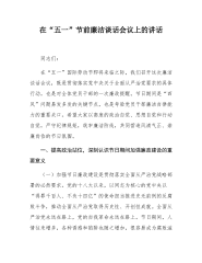 党委书记在2025年集团“五一”节前集体廉政谈话会上的讲话提纲