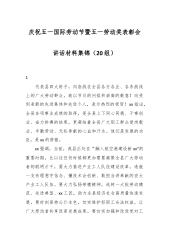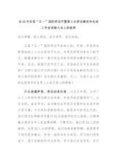 党工委书记在全市庆祝“五一”国际劳动节暨劳动模范和先进工作者表彰大会上的致辞(2篇)篇1:各位劳模、职工朋友、各位领导、各位来宾: 正值“五一”国际劳动节来临之际,市委、市政府在新落成的工人文化宫召开大会,共同庆祝劳动者自己的节日,隆重表彰五年一届评选出来的市级劳动模范和先进工作者。在此,我谨代表市总工会,向奋战在全市各条战线的广大职工致以节日的问候!向今天受到表彰的先进个人表示热烈的祝贺!向长期以来重视、关心、支持工会工作的各级领导和各界人士表示衷心的感谢! 汗水浇灌梦想,劳动创造价值。过去五年里,全市广大工人阶级和劳动群众在市委、市政府的坚强领导下,立足本职,奋发作为,成为推动全市经济...