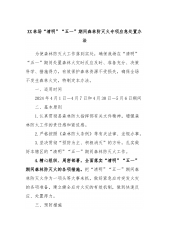 关于做好清明节、复活节和“五一”期间宗教领域安全生产和维稳工作的通知各宗教活动场所:清明节、复活节和“五一”假期即将到来,随着疫情防控措施的优化调整,今年前往各宗教活动场所祭祀和参加活动的群众将较往年有所增加。为切实做好近期宗教领域安全生产和维稳工作,现将有关事项通知如下:一、常备不懈抓好安全生产工作各宗教活动场所要重点围绕“防拥挤、防踩踏、防垮塌、防火灾”等关键环节,按照“谁主办、谁负责”的原则,压实场所主体责任,落实人员聚集安全、消防安全和交通安全等各项安全防范措施。在清明节期间,各宗教活动场所要始终坚持“安全第一、预防为主”的工作方针,结合实际科学合理设置祭扫服务场所最大承载量,对祭扫人...