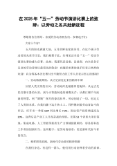 在2025年“五一”劳动节演讲比赛上的致辞:以劳动之名共赴新征程
