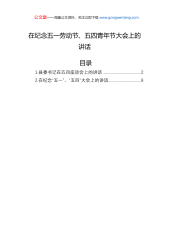 公文堂——海量公文资料,关注立即下载www.gongwentang.com在纪念五一劳动节、五四青年节大会上的讲话目录1.县委书记在五四座谈会上的讲话......................................22.在纪念“五一”、“五四”大会上的讲话................................9县委书记在五四座谈会上的讲话青年朋友们、同志们:今年是五四运动103周年,也是党的二十大召开之年。在这个具有特殊意义的历史时刻,很高兴与全县各界青年代表汇聚一堂,隆重纪念五四运动103周年,分享与家乡共奋进、与时代齐发展的心路历程。首先,我代表县委,向在座的各位青年...