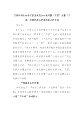 区组织部长在全区抓党建促乡村振兴暨“五星”支暨“五星”支部创建工作推进会上的讲话同志们:X月X日,全市召开了抓党建促乡村振兴暨“五星”支部创建工作推进会,聚焦省定“五星”支部创建任务和我市实际制定了“两大机制”(“五专班”推进机制和“四级联帮”机制)和“十大行动”(软弱涣散村党组织整顿提升行动、“党建N联动”助力村集体经济和农民增收行动、基层干部涵养行动、村集体经济提升行动、专业物业管理全覆盖提质增效行动、破解基层治理“小马拉大车”突出问题行动、党群服务中心综合使用效率提升行动、人居环境提升行动、“四议两公开”标准化实施行动、微网格党员联户全覆盖行动),相关材料已经印发给大家。下面,就做好全区...
