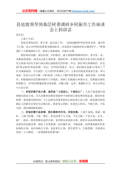 公文写作网—海量公文资料,关注立即下载httpwww.x5xd.com/县处级领导到基层村委调研乡村振兴工作座谈会上的讲话同志们:大家下午好!很高兴来到这里,和大家一起交流工作,一起谋划畅想*村的美好未来。刚才听了汇报,真心为*村的发展变化感到高兴,应该说在当地政府的正确领导下,*村两委作了大量细致的工作,取得了显著成效,为你们点赞。做好基层党建、基层治理、乡村振兴、做大做强村级集体经济,是中央、省、市都高度重视、高度关注的大事要事。前段时间,市委组织部及市有关部门的联合发文要求市各有关部门派出精兵强将担任驻村第一书记,我们单位积极响应,并选派*同志担任*村驻村第一书记,为*村的发展出一份力,...