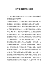 乡村振兴农村基层党建工作综述办好农村的事情,实现乡村振兴,基层党组织必须坚强,党员队伍必须过硬。**市现有涉农街道(乡镇)**个,村党组织****个,农村党员*万余名。近年来,**市委坚持以习近平新时代中国特色社会主义思想为指导,认真贯彻落实新时代党的建设总要求和新时代党的组织路线,以“红色引擎工程”为牵引,以“三乡工程”为抓手,以“重引领、强组织,重能力、强队伍,重融合、强发展,重精细、强治理”为重点,发挥农村基层党组织引领统筹作用,着力探索超大城市抓党建促脱贫攻坚和乡村振兴新路子。重引领强组织——乡村振兴引擎动能更足农村工作千头万绪,抓好农村基层组织建设是关键。**市将加强村党组织建设放在...
