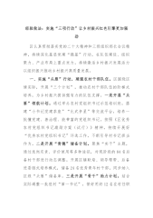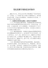 2023年在创建乡村振兴示范区重点工作推进会议上的发言稿根据会议安排,下面我就**2023年推进乡村振兴示范创建工作作以简要汇报,不妥之处,恳请批评指正。2023年,**抢抓国家、省级乡村振兴示范村创建契机,紧紧围绕创建全省乡村振兴示范区目标,以生态地灾搬迁为突破口,以乡村建设为重点,全力推进组织振兴、乡村建设、产业发展、基层治理等工作,持续提升群众生产生活品质,加快建设宜居宜业和美乡村。一、坚持党建引领,以组织建设牵引乡村振兴。一是建强战斗堡垒。把党建引领作为推动乡村振兴的“第一动力”,持续开展基层党建“四化四提”强基固本行动和星级标准化党支部对标争创活动,通过抓基层、强基础、固基本、促提升...