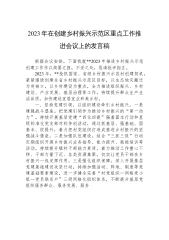 2023年在创建乡村振兴示范区重点工作推进会议上的发言稿