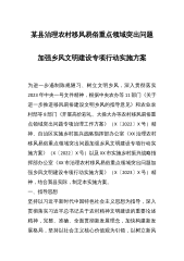 某县治理农村移风易俗重点领域突出问题加强乡风文明建设专项行动实施方案为进一步遏制陈规陋习、树立文明乡风,深入贯彻落实2023年中央一号文件精神,根据中央农办等11部门《关于进一步推进移风易俗建设文明乡风的指导意见》和农业农村部等8部门《开展高价彩礼、大操大办等农村移风易俗重点领域突出问题专项治理工作方案》(X〔2022〕X号)精神、自治区实施乡村振兴战略指挥部办公室《XX治理农村移风易俗重点领域突出问题加强乡风文明建设专项行动实施方案》(X〔2022〕X号)以及XX市实施乡村振兴战略指挥部办公室《XX市治理农村移风易俗重点领域突出问题加强乡风文明建设专项行动实施方案》(X〔2023〕X号)精神...