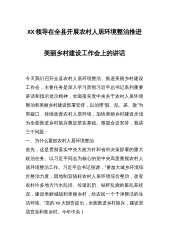 XX领导在全县开展农村人居环境整治推进美丽乡村建设工作会上的讲话今天我们召开全县农村人居环境整治、推进美丽乡村建设工作会,主要任务是深入学习贯彻习近平总书记系列重要讲话和指示批示精神,全面落实党中央关于农村人居环境整治和美丽乡村建设部署安排,以治理“脏、乱、差、散”为突破口,持续改善农村人居环境,加快美丽乡村建设步伐为全面推进乡村振兴奠定坚实基础。根据会议安排,我讲三个问题:一、为什么要抓农村人居环境整治首先,这是贯彻落实中央大政方针和省市决策部署的重大政治任务。以习近平同志为核心的党中央高度重视农村人居环境整治工作。习近平总书记强调,“要加大城乡环境综合整治力度,因地制宜搞好农村人居环境综合...