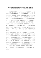 关于破除乡村治理人才缺乏的路径研究习近平总书记强调:“乡村振兴,人才是关键”,人才是农村事业发展的重要前提。在现代化浪潮影响下,农村人口大量外流,农村社会“空心化”,逐步瓦解了农村传统社会结构,滋生了乡村治理行动上“慌”和农村发展上的“荒”的问题。要实现乡村良治和乡村发展振兴,破除农村社会“慌”与“荒”,首要也是必须的,要解决好人才这个关键要素。以党建为引领,提质素能、营造氛围,破除环境“恐慌”。“党建十制度”,发挥党建引领作用,坚持党建引领基层治理,积极发挥基层党组织“堡垒”作用,完善村人才引进管理机制建设,完善村人才联系工作机制,细化本土人才培养举措。“培训十能力”,做到全覆盖轮训,加强村...