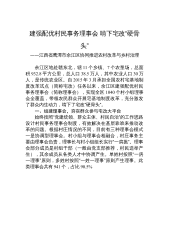 建强配优村民事务理事会啃下宅改“硬骨头”——江西省鹰潭市余江区协同推进农村改革与乡村治理余江区地处赣东北,辖11个乡镇、7个农垦场,总面积932.8平方公里,总人口38.5万人,其中农业人口30万人,是传统农业区。自2015年3月承担全国农村宅基地制度改革试点(简称宅改)任务以来,余江区建强配优村民事务理事会(简称理事会),实现全区1040个村小组理事会全覆盖,带领农民群众开展宅基地制度改革,充分激发了群众内生动力,啃下了宅改“硬骨头”。一、组建理事会,夯实群众参与宅改大平台始终按照“党建统领、群众主体、村民自治”的工作思路设计村民事务理事会制度,有效解决在基层靠谁来推动改革的问题。根据村庄情...