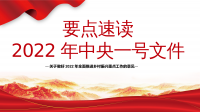 —关于做好2022年全面推进乡村振兴重点工作的意见—要点速读2022年中央一号文件前言/PREFACE 22日,《中共中央国务院关于做好2022年全面推进乡村振兴重点工作的意见》,即2022年中央一号文件发布。这是21世纪以来第19个指导“三农”工作的中央一号文件。文件突出年度性任务、针对性举措、实效性导向,部署2022年全面推进乡村振兴重点工作,明确了两条底线任务:保障国家粮食安全和不发生规模性返贫;三方面重点工作:乡村发展、乡村建设、乡村治理;推动实现“两新”:乡村振兴取得新进展、农业农村现代化迈出新步伐。目录234两条底线任务三方面重点工作推动实现“两新”1重要意义重要意义第一部分重要...