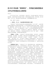 在2023年全县投资和项目建设、招商引资、营商环境暨民营经济发展大会上的讲话同志们:这次会议是春节假期后召开的第一个高规格的会议,也是聚焦高质量发展的一次动员大会,核心是落实项目建设、招商引资、营商环境和民营经济发展这四项工作。之所以合并起来集中部署,一方面是为了减少会议,另一方面这四项工作本来就是一体的。**高质量发展关键在项目建设、核心在招商引资、基础在营商环境、动力在民营经济,这是**高质量发展四个“擎天大柱”。所以,这次动员会议是落实中央、省市委经济工作会议精神的安排部署会,也是落实“八个行动”的一次再动员、再部署、再细化会议,就是为了能够早安排、早部署、早动手,从而实现各项工作开门红...