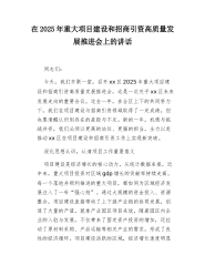 常务副县长在2025年全县重点项目谋划储备工作推进会上的讲话同志们:今天,我们利用半天时间召开全县重点项目谋划储备工作推进会,主要任务是深入学习贯彻党的二十大和二十届三中全会精神,全面落实中央经济工作会议、省委十一届六次全会、市委五届五次全会部署要求,聚焦“十四五”规划中期评估关键节点,围绕“强基础、补短板、增动能”目标,系统梳理当前项目谋划储备现状,找准问题症结,动员全县上下以更高站位、更实举措、更严作风抓项目、谋发展,为2025年下半年乃至“十四五”末全县经济社会高质量发展打牢坚实基础。刚才,县发改局通报了1—7月重点项目谋划储备总体情况,县住建局、农业农村局、文旅局分别作了发言,讲得很实...