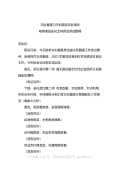灾后重建工作和县区项目谋划电视电话会议主持词及讲话提纲同志们:现在开会,今天的会议主要是传达省灾后重建工作会议精神,安排我市灾后重建、2022年度项目谋划和专项债项目谋划工作。今天的会议共有五项议程:首先,会议进行第一项请王国庆副市长传达省政府灾后重建会议精神;(传达完毕)下面,会议进行第二项市发改委、市应急局、市水利局、市农业农村局、市住建局分别汇报灾后重建方案编制及工作情况(每家6分钟)首先,发改委发言,应急局做准备;(发言完毕)应急局发言,水利局做准备;(发言完毕)水利局发言,农业农村局做准备;(发言完毕)农业农村局发言,住建局做准备;(发言完毕)住建局发言;(发言完毕)下面,会议进行第...