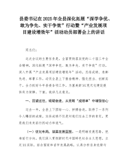 县委书记在2025年全县深化拓展“深学争优、敢为争先、实干争效”行动暨“产业发展项目建设增效年”活动动员部署会上的讲话