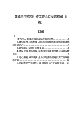 韩城全市招商引资工作会议发言摘录6篇(20220418)
