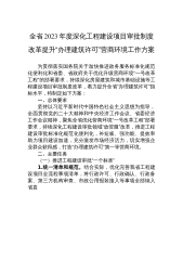 全省2023年度深化工程建设项目审批制度改革提升“办理建筑许可”营商环境工作方案