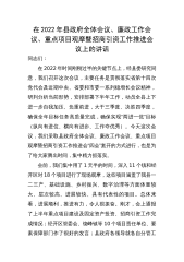 在2022年县政府全体会议、廉政工作会议、重点项目观摩暨招商引资工作推进会议上的讲话