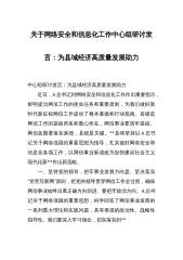 关于网络安全和信息化工作中心组研讨发言:为县域经济高质量发展助力