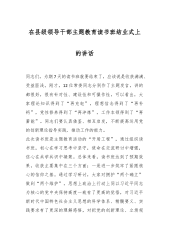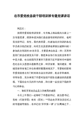 在市委党校县级干部培训班专题党课讲话 同志们: 按照市委党校培训安排,今天晚上将由我为大家上一次专题党课,很荣幸成为我们县处级培训班的班长、临时党支部书记。首先,我代表班委,向参加此次培训的各位学员表示热烈欢迎,向班主任及授课老师致以诚挚问候!参加此次培训的48名学员,主要是来自各县(市)区和市直部门的县处级党员干部,都是来自各行各业的业务骨干中坚力量。在当前我市开展学习贯彻习近平新时代中国特色社会主义思想主题教育之际,经济发展、项目建设、维稳安保等各项工作任务艰巨繁重的情况下,市委组织部和市委党校拿出专门时间举办这次培训班,机会非常难得、非常珍贵,充分体现了市委对加强干部队伍建设的高度重...
