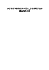 小学生给学校的建议书范文_小学生给学校的建议书怎么写《小学生给学校的建议书范文_小学生给学校的建议书怎么写》格式模板,仅供写作参考,阅读!学校有不好的地方我们可以通过写建议书提建议,这样校长也许就能采取我们的建议,下面是小编为大家带来的给学校的建议书,欢迎大家阅读和参考!希望对你有帮助!给学校的建议书1敬爱的校长先生:您好!您我学生十分照,也十分关心,我造了一个完对们顾还给们营美的环境,既能够认真专一地读书,又能够自由自在地玩耍,让我们过了一个开心而有好处的童年。这真是以身作则啊!我“想对您说:谢谢!”但是,我觉得学校管理上还有一些漏洞。第一,课间餐的数量。每次,课间餐管理老师分好后,就走了。...