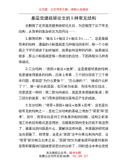 公文堂公文写作之家、体制人加油站基层党建政研论文的5种常见结构在翻阅了近百篇党建类政研论文后,为您梳理了以下常见结构,从简单到复杂依次为您列出——1.极简结构:“做法1+做法2+做法3+……”。这是最最简单的结构,通篇的小标题就是几种做法的排列,每一个小标题之下详尽描述了如何做的、效果如何这样的内容。如果做法较多,那么小标题就是每一类做法的总结,下面再细分几种具体做法。2.三分结构:“原因+做法+效果”。这是最最经典的结构,也是被使用最多的结构,总体上来看,三个部分回答了三个基本问题,那就是“为什么要做?”、“怎么做的?”、“做成什么样了?”。第一部分的原因,也可称为依据、导语等其它说法,但意...