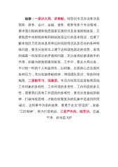 三是坚持高质量攻坚推进。建立健全一级抓一级、一级对一级负责的创建责任体系,确保每一个部门、每一个岗位、每一名民警都明确应完成的任务、应实现的目标、应承担的责任。强化调度,严格督察,严格实行每周一通报、两周一调度制度。严格问责,注重奖惩,对创建工作成绩突出的单位和个人,坚决表彰奖励;对措施不力、行动迟缓、影响全局创建工作整体效果、整体进度的责任单位和人员,按照“谁牵头谁负责,谁主管谁负责,谁丢分谁负责,谁丢分谁买单”的要求,一律从严追究相应责任。 市公安局在此郑重表态,全体人员将以“背水一战、志在必得”的坚强决心,不折不扣贯彻落实好市委、市政府的决策部署,以抓铁有痕、踏石留印的工作态度,带...
